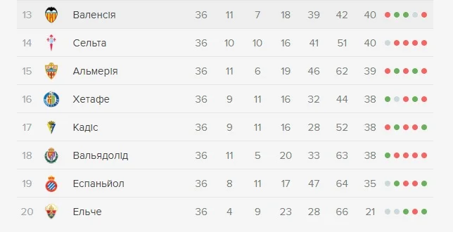 О зоне вылета. Эльче уже оформил понижение. У идущего предпоследним Эспаньола еще есть шансы спастись. Интрига в борьбе за выживание просто фантастическая – на два места в Сегунде "претендуют" сразу 7 клубов! Слова лишние, достаточно заглянуть в таблицу за два тура до финиша. Вылететь могут даже Валенсия с Сельтой, немного оторвавшиеся от конкурентов. Уже в воскресенье, 28 мая, "летучие мыши" сыграют с Эспаньолом – это сражение может решить очень много.