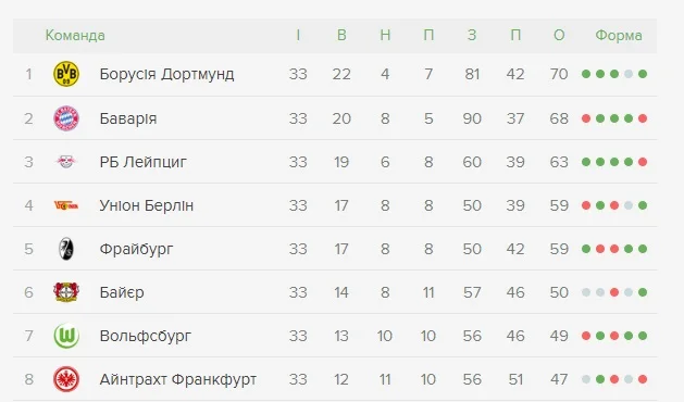 РБ Лейпциг гарантировал себе третье место и сыграет в Лиге чемпионов. На последнюю путевку претендуют Унион и Фрайбург. Столичная команда в последнем туре сыграет с Вердером, Фрайбург будет противостоять Айнтрахту. Разница голов пока лучше у Униона (на 4 мяча). Тот, кто финиширует четвертым, будет играть в ЛЧ. Пятая команда будет выступать в Лиге Европы.