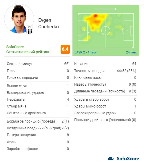 Отметим, что Чеберко провел на поле 66 минут и получил оценку 6,4 – хуже только у трех его одноклубников. Украинец однажды вынес мяч, совершил четыре перехвата, один отбор и удачную попытку дриблинга. Из негатива отметим аж 8 потерь мяча и лишь 3 точные длинные передачи из 9.