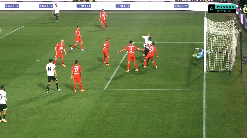 На 36-й минуте Коваленко мог ассистировать на Амиана, выполнив точную подачу с углового. Амиан пробил головой над перекладиной. На тот момент Специя уже горела в счете - а виновником в пропущенном голе стал наш Витя. Именно он не успел накрыть дальний удар Чуррии, который прилетел в дальний нижний угол. 0:1.