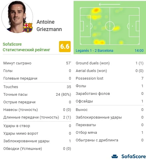 Французский форвард провел еще один серый поединок, получив самый низкий балл среди всех игроков Барселоны, которые вышли на поле с первых минут, по версии аналитического портала SofaScore – 6.6. Гризманн вообще не пробивал по воротам Куэльяра, лишь 34 раза касался мяча, не сделал ни одной острой передачи и в очередной раз продемонстрировал отсутствие взаимопонимания с Месси и Суаресом. Если в предыдущих поединках его спасал приличный объем черновой работы на оборону, то сейчас и этого не было. Антуан только однажды перехватил сферу в центре поля. Логическое следствие его игры – ранняя замена на 57-й минуте. Видаль, который вышел вместо "Маленького принца", отметился победным голом, поэтому участие француза в матче Барсы против Боруссии – под большим вопросом. Если так будет продолжаться и дальше, Гризманн рискует превзойти самые большые трансферные провалы "кулес" – Коутиньо и Дембеле.