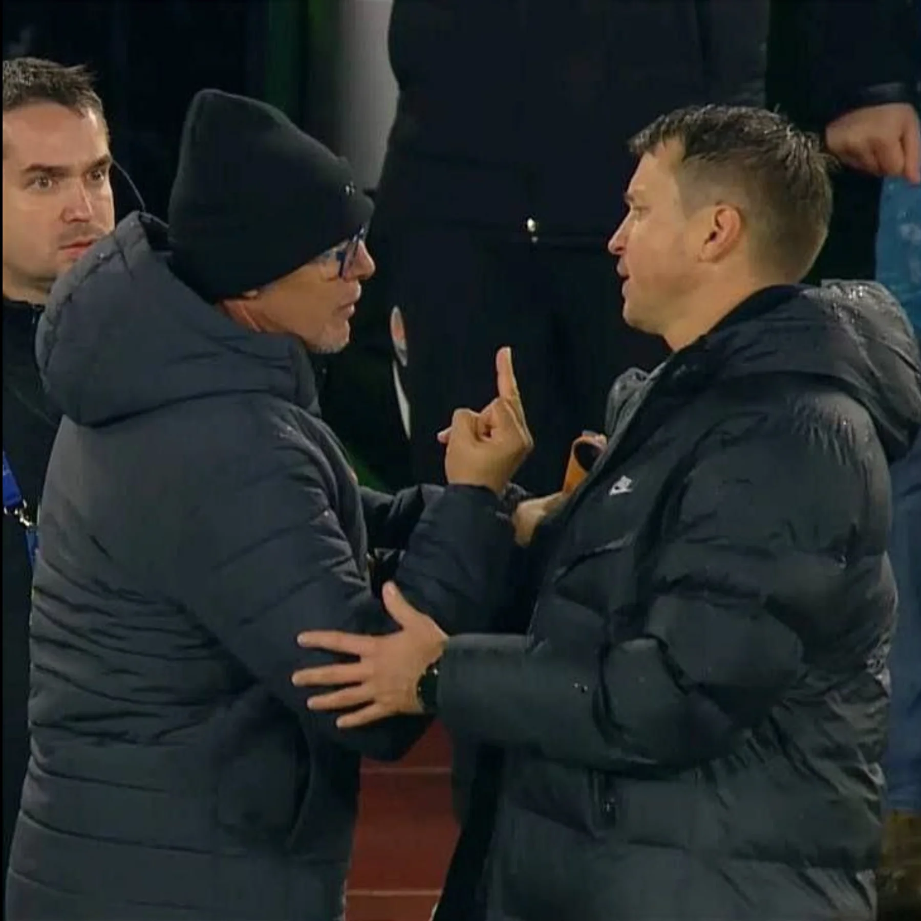 Во время традиционного рукопожатия между тренерскими штабами Карло Николини, ассистент главного тренера Шахтера, внезапно разразился эмоциями. После короткой благодарности за игру он неожиданно показал неприличный жест Руслану Ротаню – момент попал в объективы камер.