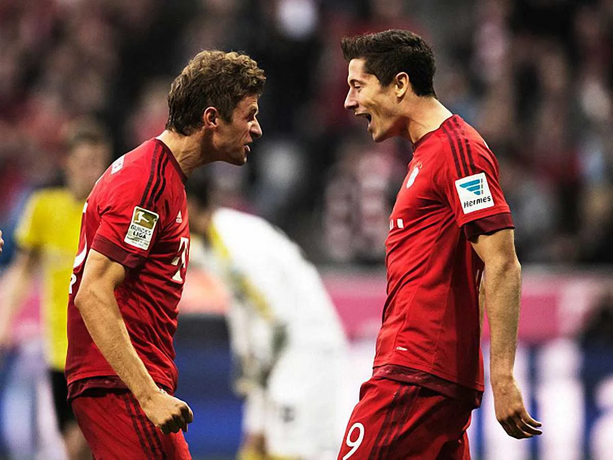 Левандовски празднует с Мюллером взятие Дортмунда / Getty Images