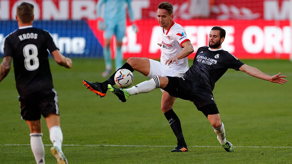 После перерыва "сливочные" благодаря феерическому ляпу голкипера вырвались вперед. Жуниор Винисиус с левого фланга прострелил в штрафную, а вратарь не сумел зафиксировать мяч и направил его в сетку. После этого мадридцы больше оборонялись, а игроки Севильи отчаянно атаковали. На 86-й отличный шанс сравнять счет имел Окампос, но его удар из пределов штрафной потянул Куртуа. В конце концов, финальный свисток зафиксировал минимальную победу Реала – 0:1.