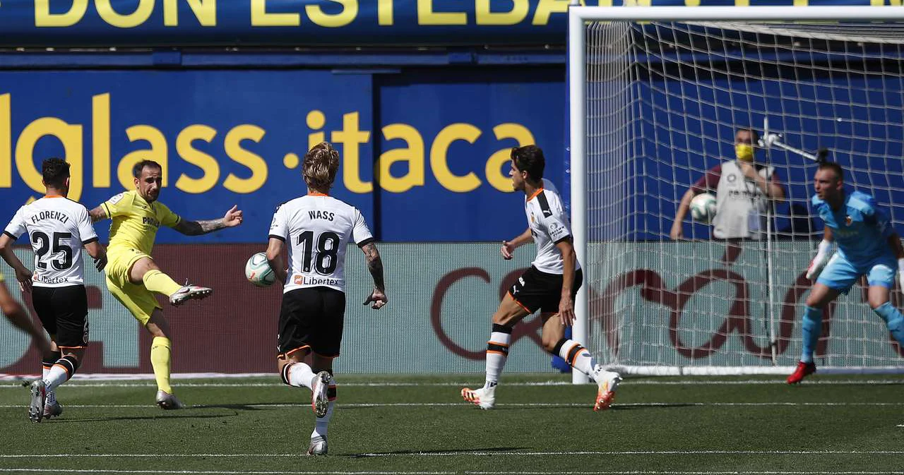 Вильярреал забил Валенсии уже на 14-й минуте. Длинный навесной пас Жерара Морено в штрафную элегантно в сетку ворот переправил Пако Алькасер. За минуту до окончания первого тайма мини-шедевр создали Сантьяго Касорла и Жерар Морено. Ветеран, получив мяч, с лету сбросил его на Морено и тот так же слету переправил его мимо Силлессена.