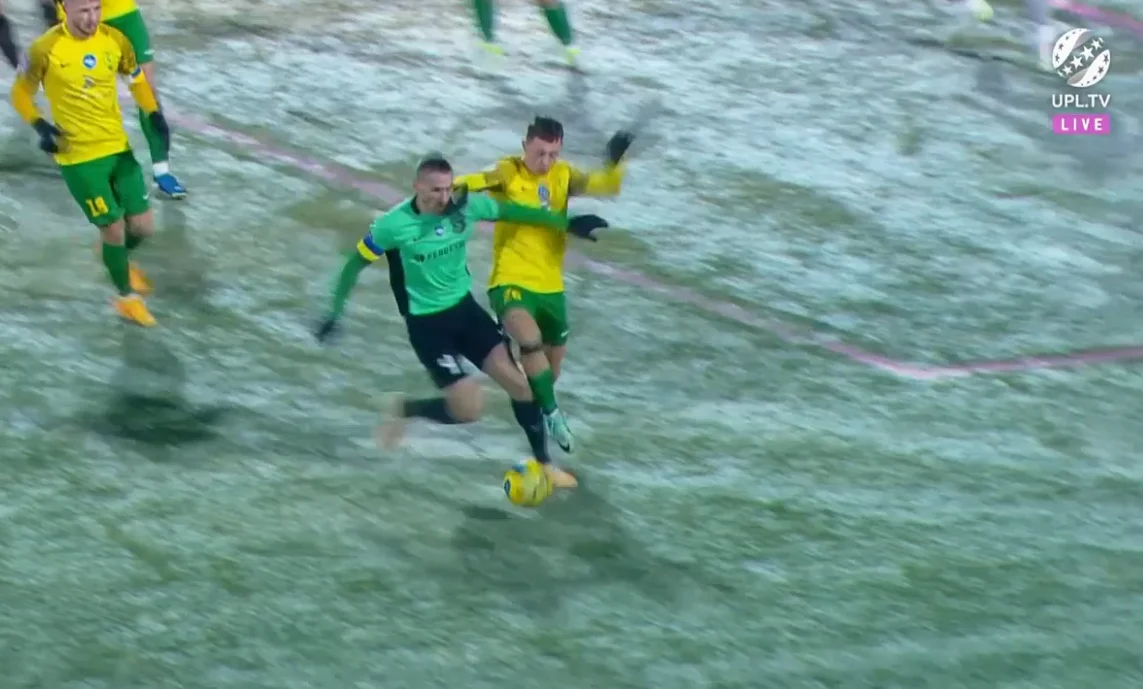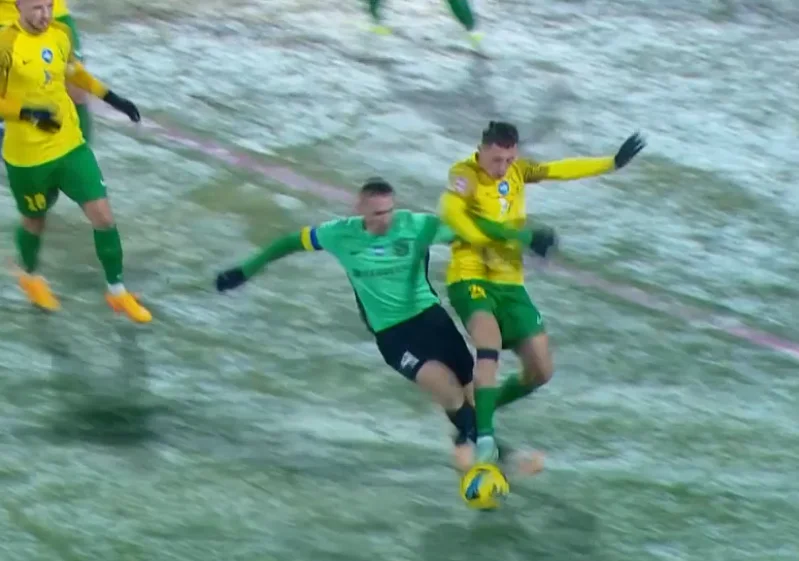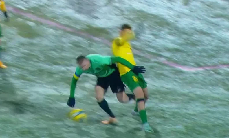 Как только арбитр дал свисток на перерыв, в области прозвучала тревога. Она растянулась на 1 час и 40 минут – и еще 20 игроки выдержали на разминку. За это время поле стало белым от снега.