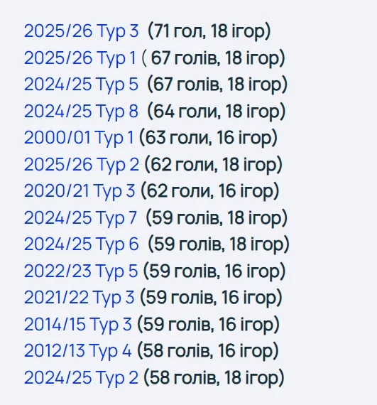 Предыдущая планка держалась на уровне 67 голов, которые были забиты в первом туре этого же розыгрыша и в пятом туре прошлого. Вообще топ-4 рейтинга самых результативных недель сформирована двумя последними кампаниями, когда ЛЧ перешла с 32 команд-участниц на 36. Соответственно каждую неделю стало на 2 матча больше.