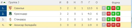 В группе J испанская Севилья не оставила никаких шансов Акхисару нашего Евгения Селезнева, отправив в ворота турецкой команды 6 "сухих" мячей.