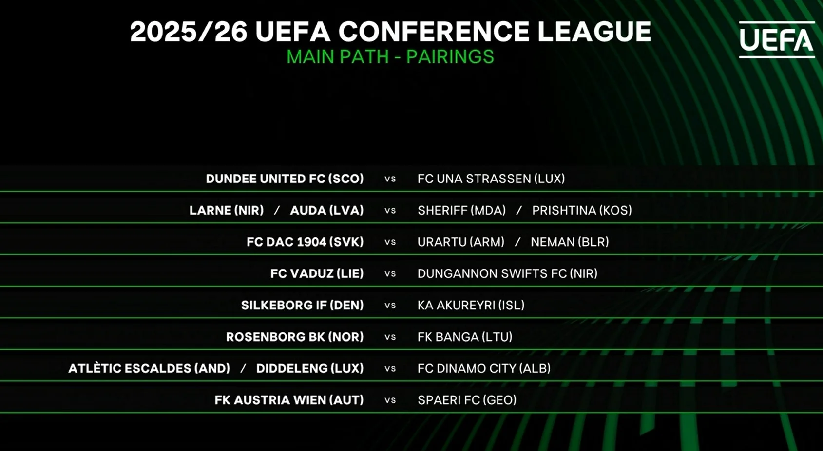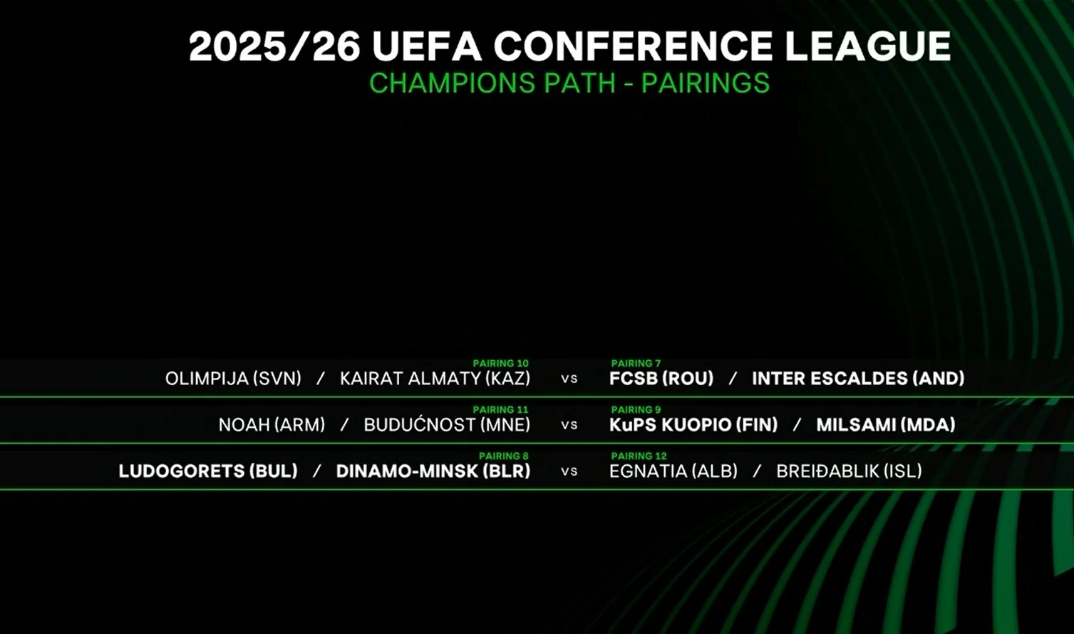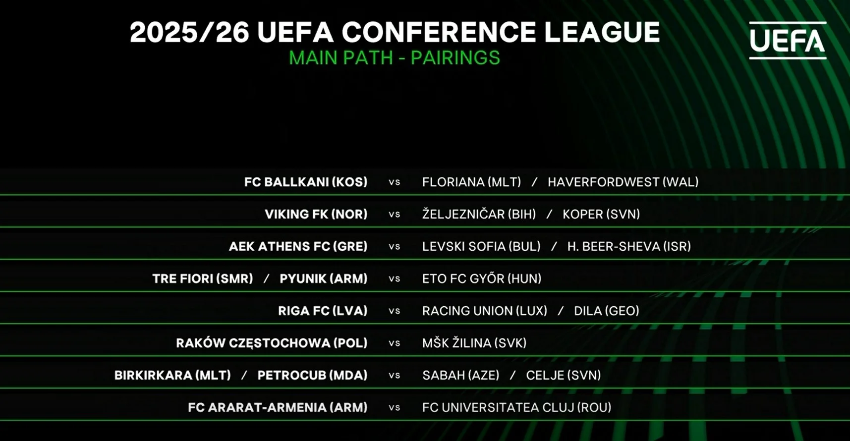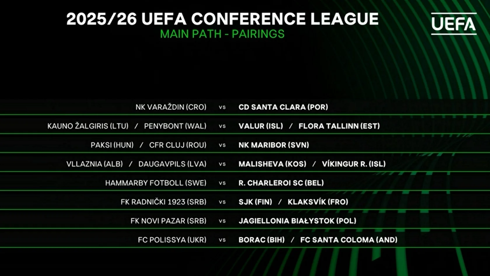 Результаты жеребьевки 2 раунда квалфикации Лиги конференций 2025/26