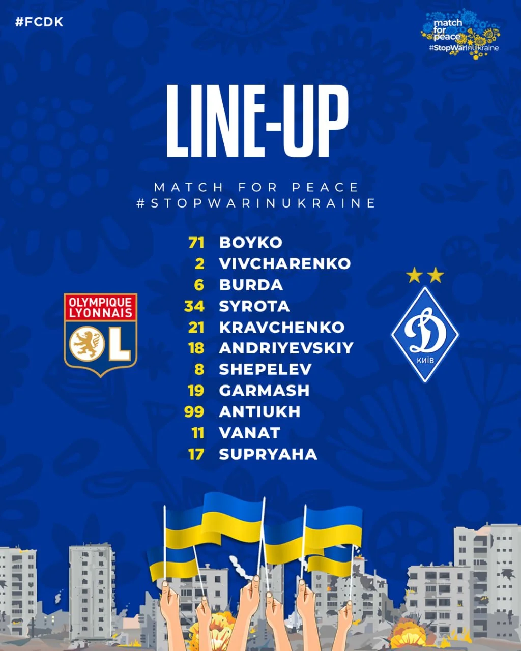 Динамо: Бойко – Кравченко, Сирота, Бурда, Вивчаренко – Андриевский, Шепелев – Антюх, Гармаш (к), Ванат – Супряга