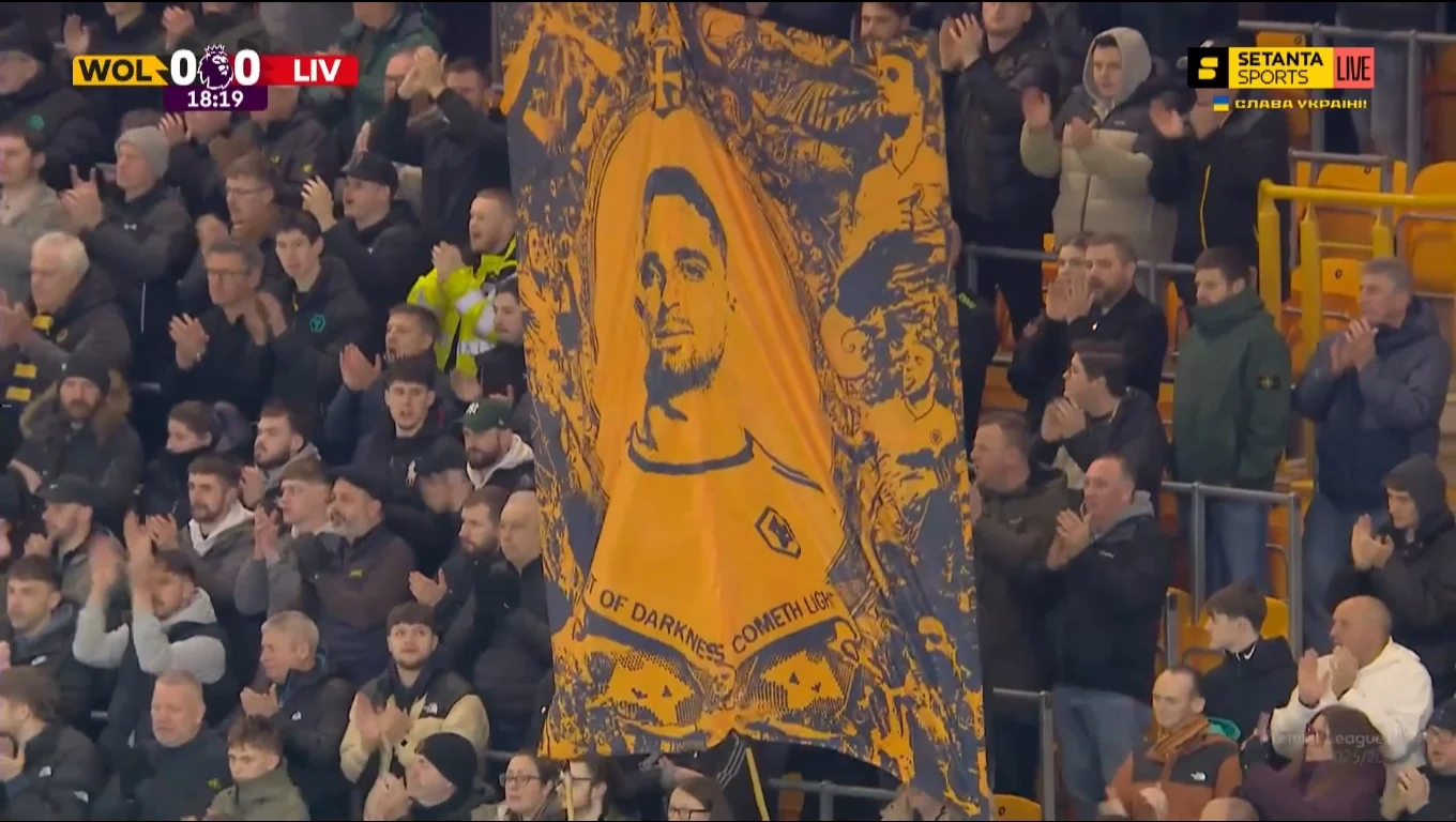 На 18-й минуте произошел очень трогательный момент: болельщики обоих клубов вспомнили своего экс-игрока Диогу Жоту, который трагически погиб в июле 2025 года в автокатастрофе с собственным братом Андре Силвой.