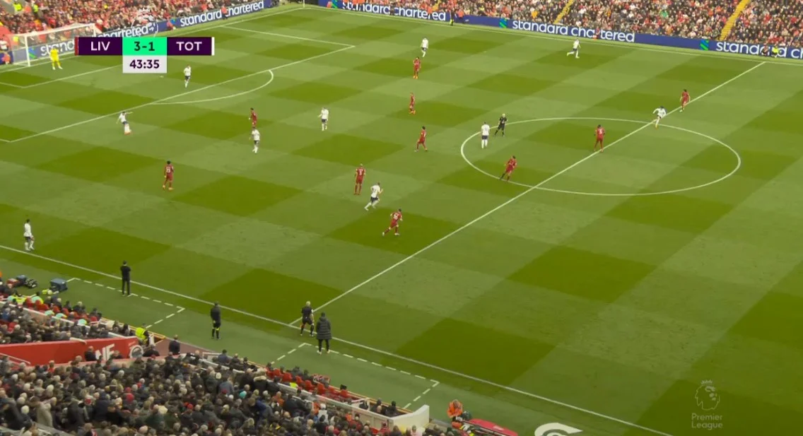 Сначала Кейн накрывает Робертсона в чужой трети. Мяч попадает в руку Харри, но рефери дает продолжить. Английский форвард выводит Сона по сути один на один – Ван Дейк выбивает с линии ворот, страхуя голкипера. Затем прекрасная передача Скиппа разрезает несколько линий прессинга, Перишич кладет того же Вирджила на газон и идеально набрасывает Кейну под расстрел. Довести счет до 3:2 мог Кулусевски. Робертсон на ровном месте оставил шведу мяч, второй раз привозит шотландец. Повезло, что Алиссон парировал ногами. Очередной дальний пас, Сон стреляет в перекладину, хотя здесь ещё и крошечный офсайд.
