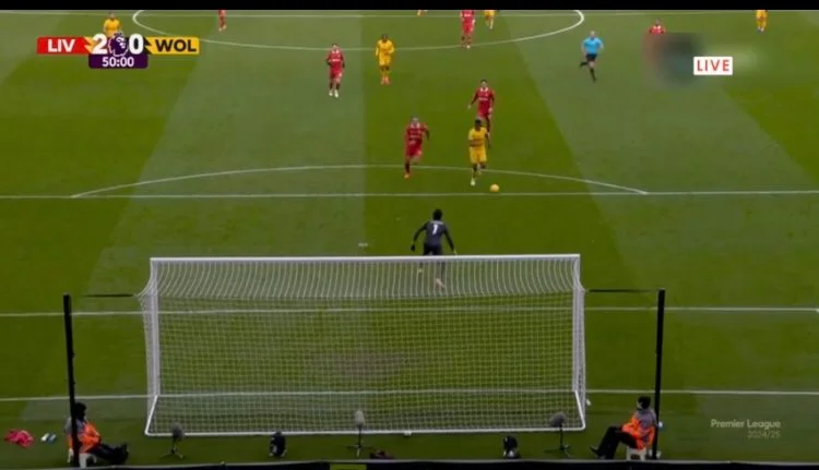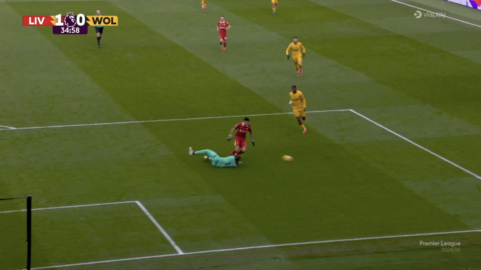 На 33-й минуте голкипер Са выбил прострел Робертсона, а потом взял добивание от Жоты с острого угла. Впрочем, уже на 35-й португалец привез пенальти, неудачно сыграв на выходе. Луис Диас откликнулся на заброс от Макаллистера и был сбит вратарем.