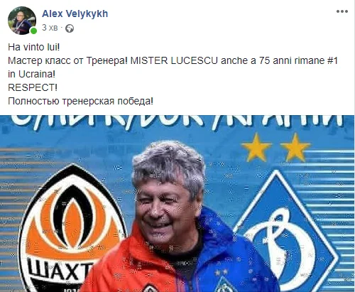 Авторитетный итало-украинский скаут Алекс Великих аплодирует тренерской победе Луческу над Каштру.