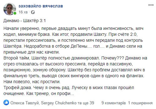 "Футбол 24" собрал первую (и самую горячую) реакцию блогосферы на матч Суперкубка Украины-2020 Шахтер – Динамо (1:3).