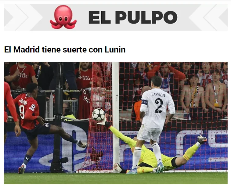 El Confidencial, Абель Ортега: У команді з Модрічем (39 років), Карвахалем (32 роки), Лукасом Васкесом (33 роки) і Феде Вальверде (26 років), які є капітанами Реала, Лунін і Фран Гарсія виходять до преси після поразки від Лілля. Соромно.
