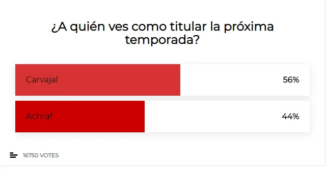 А вот здесь болельщицкий выбор несколько удивил. Опытный Карвахаль получил первую серьезную победу старых над молодыми (56% против 44%). И даже 10 голов и 17 ассистов Хакими за Боруссию Дортмунд не перевешивают 2+13 испанца. Дани немного сдал, а вот Ашраф выбился в лидеры среди лучших правых защитников мира. Если Реал вернет своего 21-летнего таланта, в этой дуэли полетят искры.