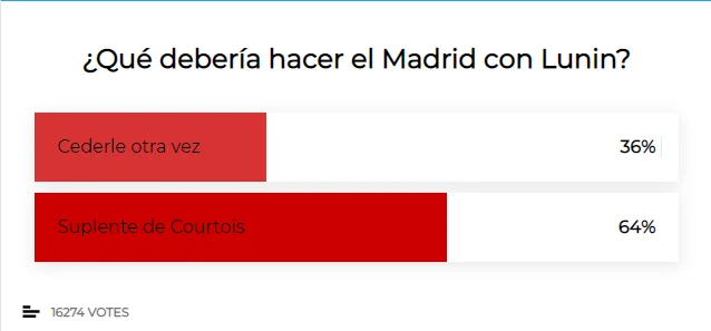 Его камбек в Мадрид под угрозой из-за тех самых случаев проигранной конкуренции. Но если в краткосрочной перспективе не может быть никаких дебатов, то в будущем, у боссов "бланкос" есть такая уверенность, украинец крайне осложнит жизнь Куртуа. А вот 64% из нескольких десятков тысяч фанатов Реала считают, что Лунина надо оставлять на роль заместителя Куртуа, а не отправлять в очередную аренду.