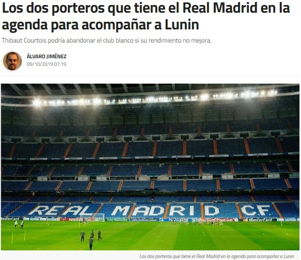 "День, чтобы наконец увидеть Лунина", – пишет Diario de Valladolid, называя встречу "бело-фиолетовых" с представителем третьего испанского дивизиона большим шансом для футболистов, которые не могут похвастаться достаточным количеством игровой практикой в первые месяцы нового сезона. Украинец не провёл на поле еще ни минуты, поэтому к нему было приковано особое внимание со стороны кастильского-леонских СМИ. Правда, они не сильно заморачивались изучением всех предматчевых раскладов и, похоже, забыли о международном статусе Лунина.