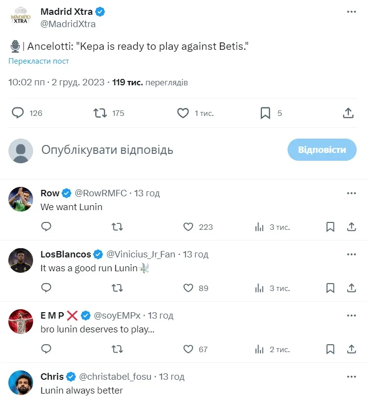 Впрочем, Карло Анчелотти снова подтвердил, что в следующем матче против Бетиса (9 декабря) должен играть восстановившийся от травмы Кепа Аррисабалага. Фанаты Реала в комментариях свирепствуют из-за такого решения главного тренера: "Мы хотим дальше видеть Лунина", "Оставь лучшего кипера в основе", "Верните Кепу в Челси, а Лунину дайте новый контракт".