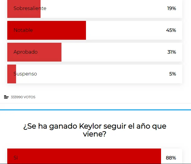 Його конкурент Альваро Одріосола теж провів сезон на трієчку, вважають 49%. Ще 32% оцінили виступ 23-річного новачка на 4 бали, а 14% на 2. Заслужив залишитись – 86%.