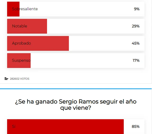 Хоч Серхіо Рамос удостоївся 3-х балів від 45%, заробивши 38% однозначного позитиву, його позиції все ще солідні – 85% фанатів бачать 33-річного центрбека і в наступному сезоні.