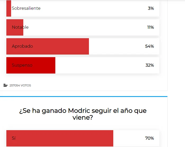 Лука Модріч отримав 2 бали від 32% і трієчку – від 54%. Утім чинний володар Золотого м'яча заслужив новий шанс, на думку 70%.