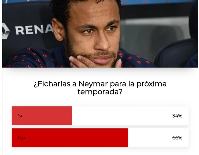 А ось 2 суперзірки викликають серйозний спротив. Так, проти підписання півзахисника Манчестер Юнайтед Поля Погба виступають відразу 59%. Ще більш небажаним є екс-форвард Барселони Неймар, у якого підтримка лише на рівні 34%.