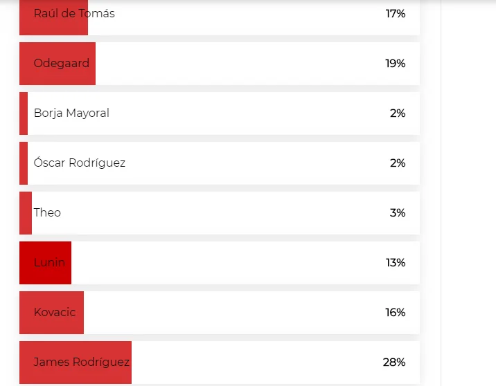 Його конкурент Феде Вальверде отримав задовільно від 55%, добре – від 21%, ставши провалом для 20%. Уругвайця бачать в команді 71% фанатів.