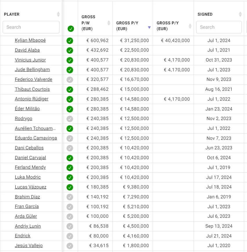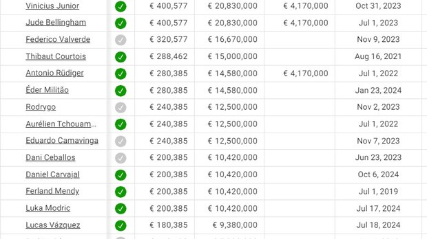 Самым богатым игроком "сливочных", конечно, стал Килиан Мбаппе. Его зарплата превышает 31 миллион евро в год (15 млн нетто), у остальных футболистов значительно меньше цифры. Это можно понять, ведь французская суперзвезда перебрался в Мадрид свободным агентом.