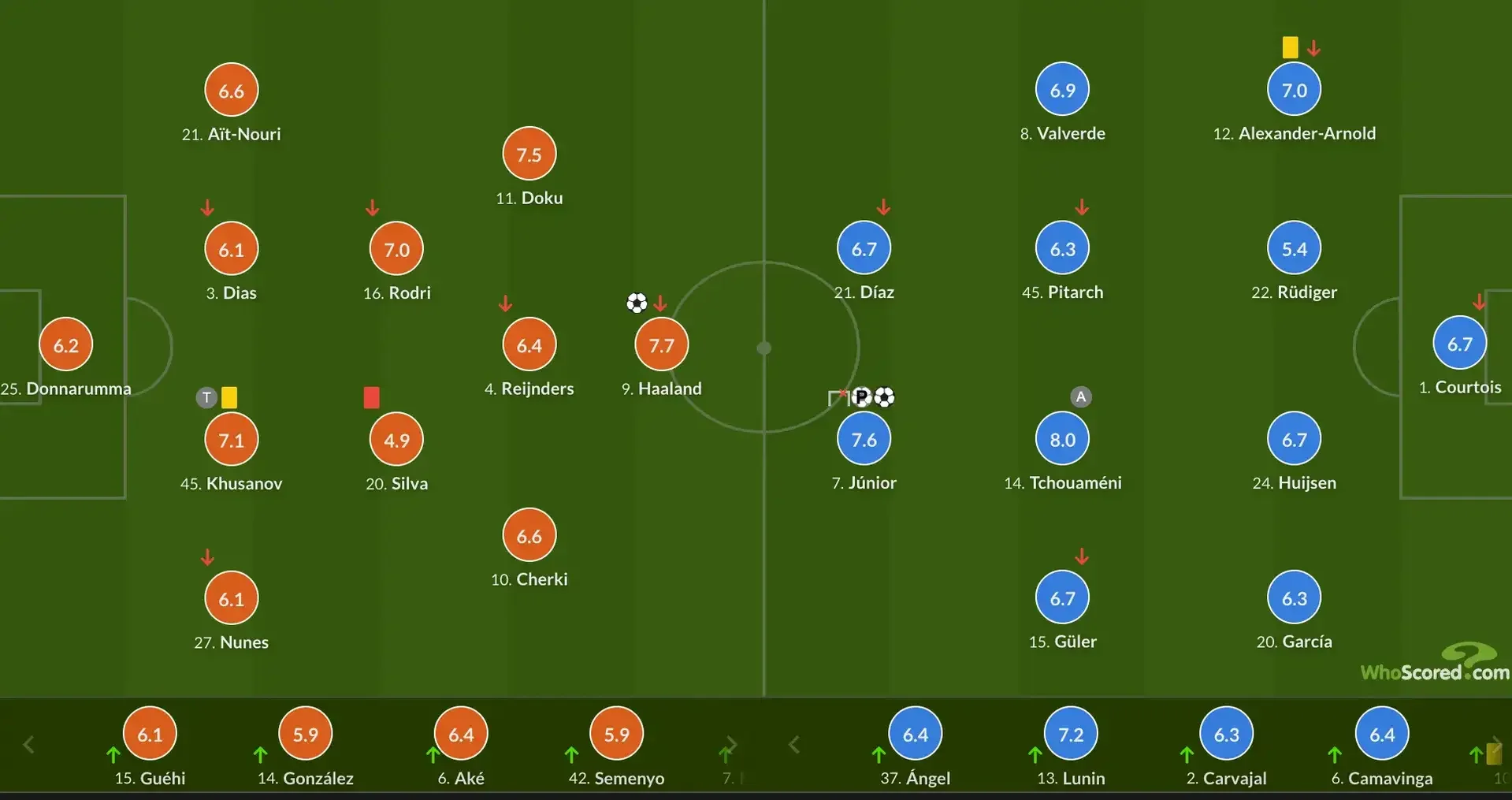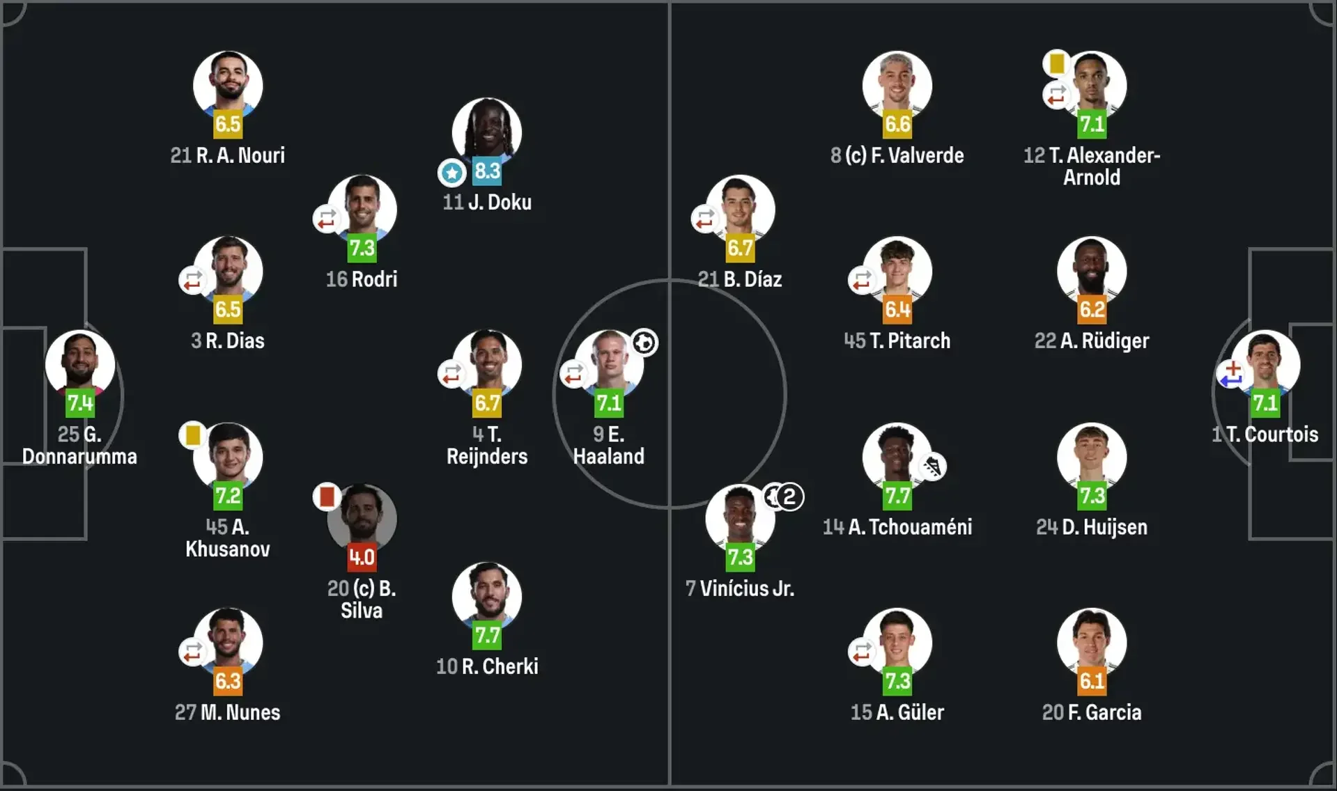 За второй тайм Лунин успел выполнить три сейва, два выноса мяча, удачно выходил из ворот и отдал 95 процентов точных передач, а также имеет 0,42 по показателю xGOT (отвернутая угроза ударов в створ). Кроме того, в активе украинского голкипера 3 подбора и 1 потеря, частое ведение мяча. Статистический портал SofaScore оценил действия Андрея в 7,4 балла. А лучшим игроком матча стал Доку из Манчестер Сити – 8,3.