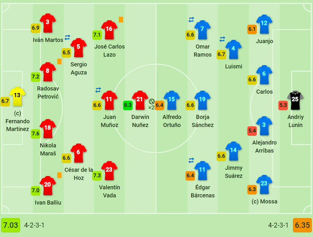В матче 23 тура Сегунды обладатель второго места принимал на своем поле новый клуб голкипера сборной Украины Андрея Лунина. Хозяева весь матч владели ощутимым преимуществом, однако в первом тайме лишь однажды пробили в створ ворот.