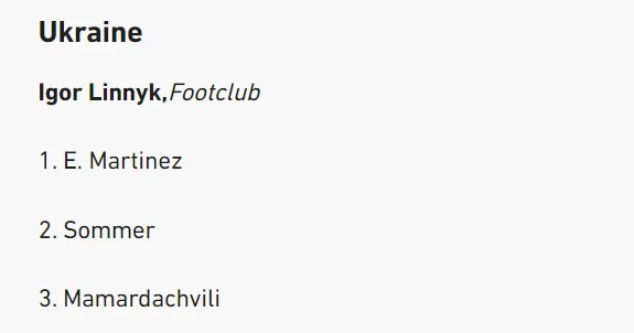 Журналист на первое место поставил Эмилиано Мартинеса, который в итоге выиграл Трофей Яшина. Вторую строчку Линник отдал Яну Зоммеру, а третью – Георги Мамардашвили.