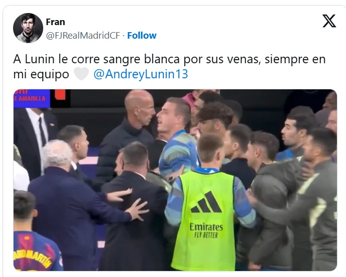 Мимоволі у шоу Вінісіуса потрапив наш Андрій Лунін. Іспанські газетярі дивуються, що саме український кіпер отримав червону при настільки широкому виборі. Віні, Ламін, Куртуа, Мілітао, Фермін, Карвахаль, Рафінья або Ферран теж заслуговували на суворіше покарання. Агресивну поведінку приписали лише Андрію. Проте, фанатам Реала його версія "тримайте мене десятеро" припала до душі. "У венах Луніна тече біла кров", "Лунін завжди у моїй команді" – схожі дописи чи не найчастіше зустрічаються у мадридських пабліках". Хай там що, юристи "королів" вже працюють над апеляцією.