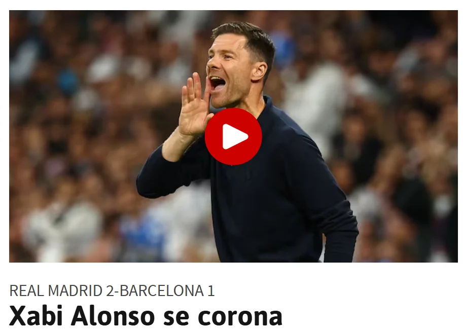 Алонсо хвалять за тактичну гнучкість і вміння рухати командою на боковій лінії. Фокус з Камавінгою був вирішальним у перемозі над Барсою, запевняють мадридські медійники. "Джуд починав справа, не надто впливаючи на гру, але Хабі зробив кілька змін. Результат: Джуд змістився до середини, а Камавінга зайняв дивну позицію "фальшивого правого вінгера". Цей хід здивував Фліка", – йдеться у матеріалі про "коронацію" Алонсо. Чи не зарано..?