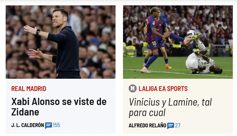 У Каталонії, тим часом, шукають винних. Diario SPORT пояснює слабкий виступ Ямаля проблемами зі спиною: "Це помітно в його ривках, коли він опускається в захист. Ламін не грає на звичному рівні. І, логічно, його команда сильно страждає від цього. Тим паче без Рафіньї і Лєвандовскі". Та місцеві ЗМІ не опускають руки. Давід Бернабеу у вланому аналізі гри називає підопічних Алонсо "слабким Мадридом". Мовляв, щойно повернуться травмовані, а Флік усуне структурні недоліки, "кулес" виграють чемпіонство.