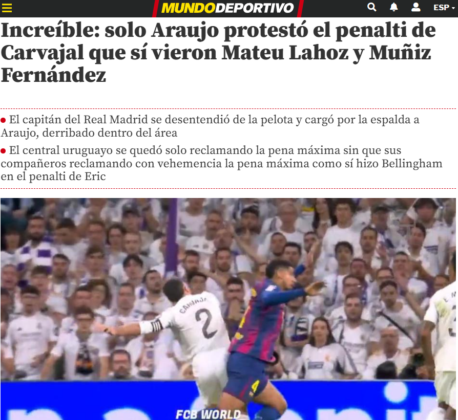 Mundo Deportivo описує ігрові проблеми й помилки, що повторюються у кожному матчі: відсутність високого пресингу та інтенсивності, провали високої лінії оборони. Попри скасовані пенальті та неймовірний гол Мбаппе у ворота Щенсни, рупор місцевої преси скаржиться, що засудили саме Барселону. Каталонцям не сподобався епізод за участі Карвахаля та Араухо. Ба більше, одіозний Матеу Лаос підлив масла у вогонь: "Карвахаль ризикує, бо штовхає його ззаду. Якби це був інший матч...".
