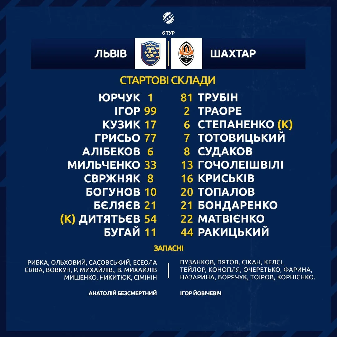 Львов в рамках 6-го тура УПЛ принимает Шахтер. Стартовые составы и информация об онлайн-трансляции – в этой новости на "Футбол 24".