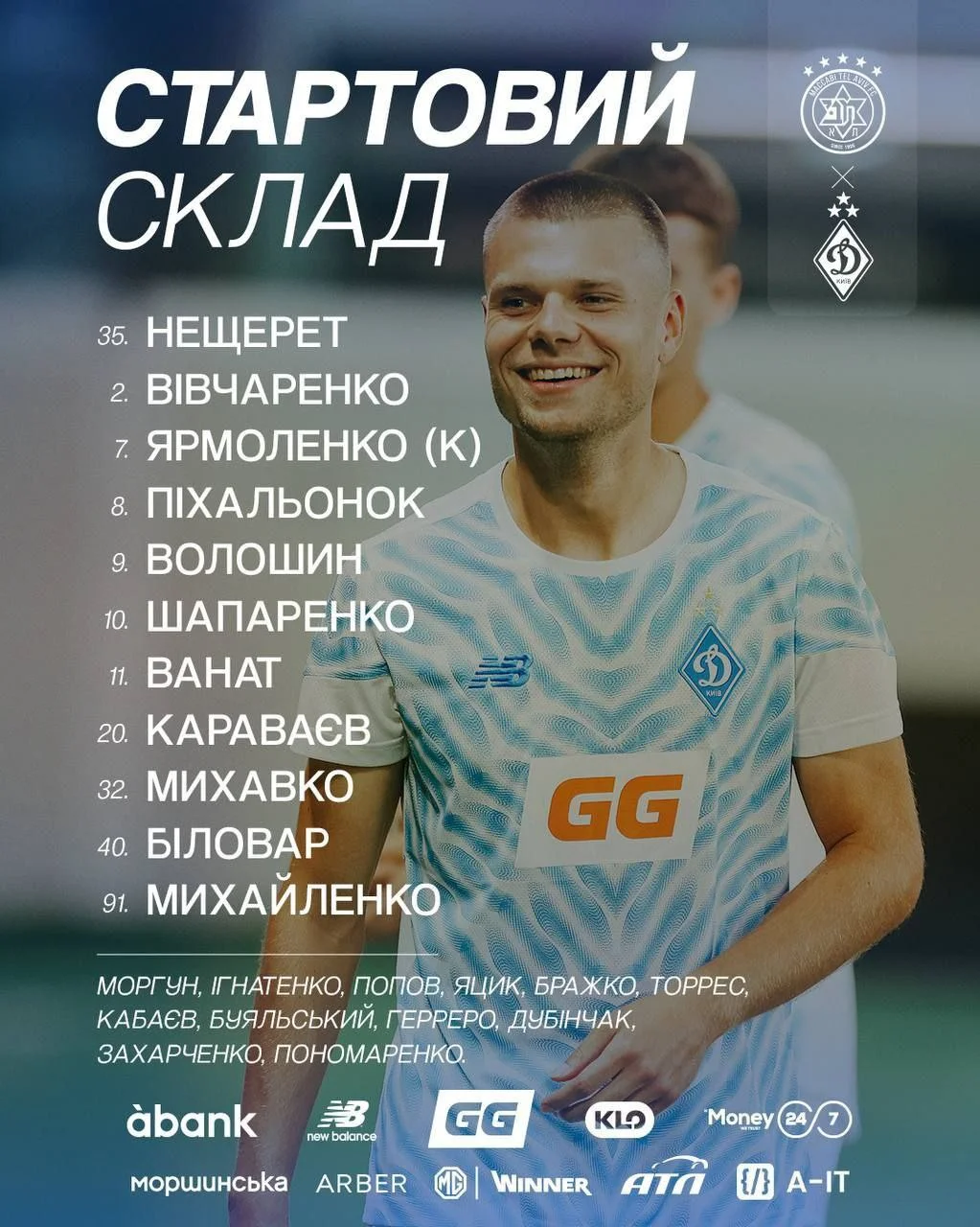 Динамо: Нещерет – Караваев, Биловар, Михавко, Вивчаренко – Михайленко, Шапаренко, Пихаленок, Ярмоленко, Волошин – Ванат
