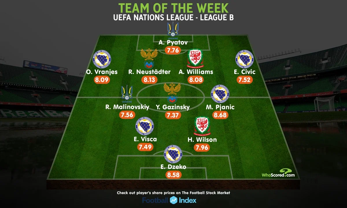 Интересно, что кроме украинцев в сборную тура попали сразу 5 представителей сборной Боснии и Герцеговины.