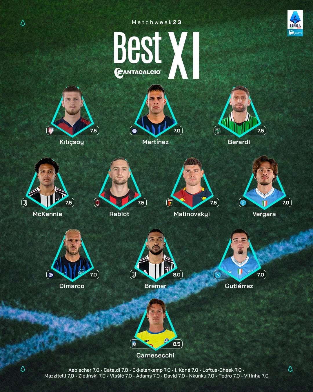 Кроме того, Руслан Малиновский вошел в символическую сборную 23-го тура Серии А по версии портала Fantacalcio. В матче Дженоа против Лацио (3:2) украинец забил гол с пенальти.