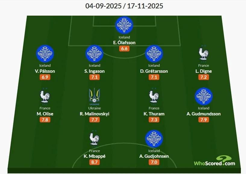 К слову, в символическую сборную также вошли звездные французы Килиан Мбаппе, Майкл Олисе, Лука Динь и Хефрен Тюрам, а также 6 представителей сборной Исландии: Олафссон, Палссон, Ингасон, Греттарссон, Гудмундссон и Гудйонсен.