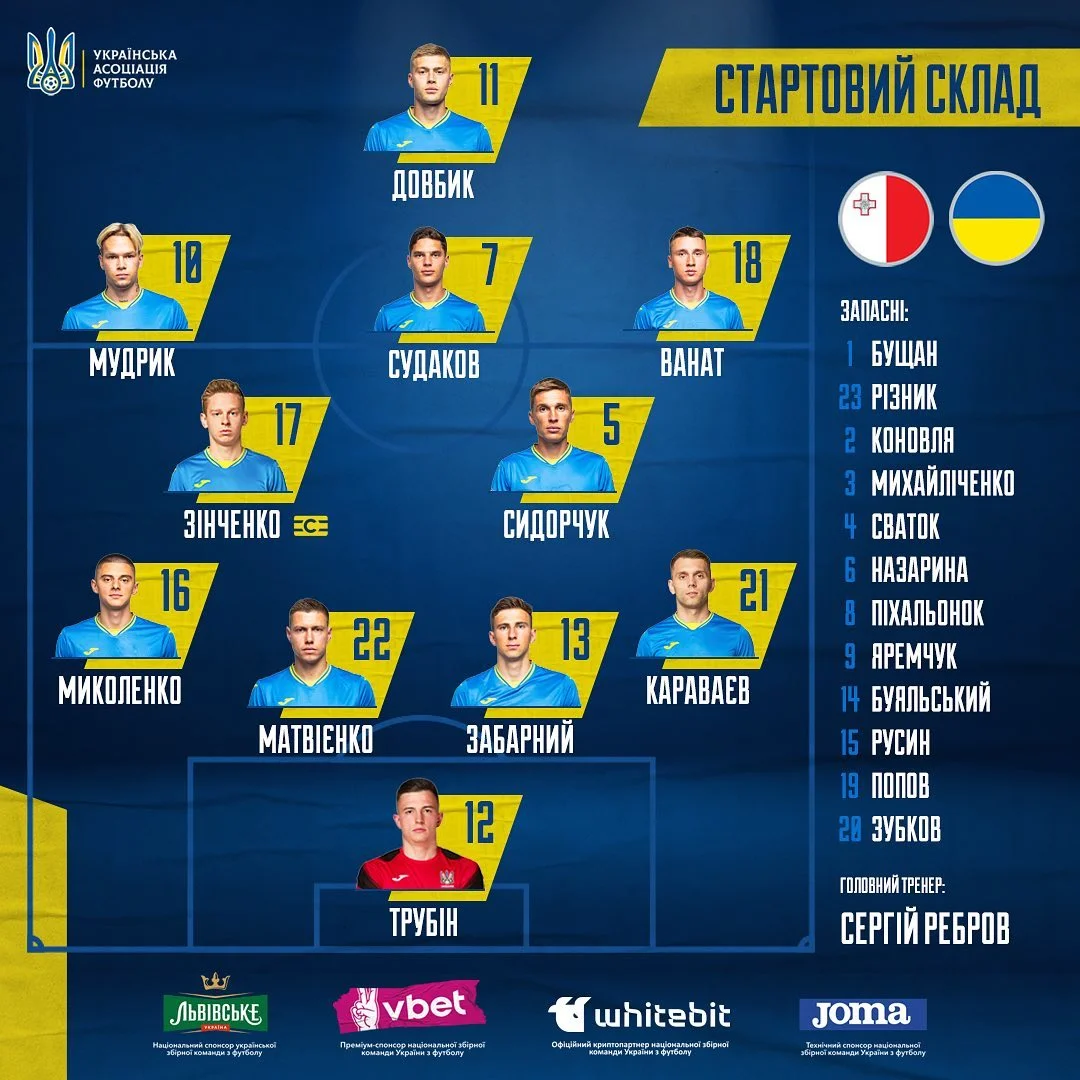 Мальта – Украина: стартовые составы и онлайн-трансляция матча отбора Евро-2024