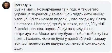 Матч у Трнаві відвідав Ігор Фесюк, батько голкіпера юнацьких збірних України і сплітського Хайдука. Враження у нього залишились не найкращі.