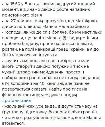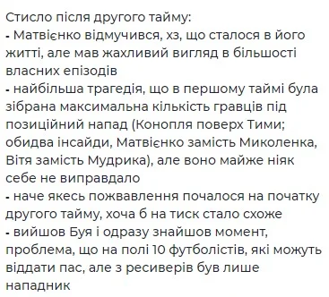 М'яко кажучи, критичні відгуки бачимо і в Михайла Смолового, відомого тактичного гіка, який прискіпливо розібрав обидва тайми у виконанні команди Реброва.
