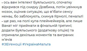 Данило Вереітін (телеграм-канал "Рахунок на табло") не оминув увагою дошкульний промах Ярмоленка.
