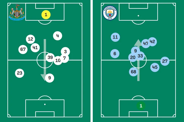 Усредненные позиции футболистов Ньюкасла и Манчестер Сити