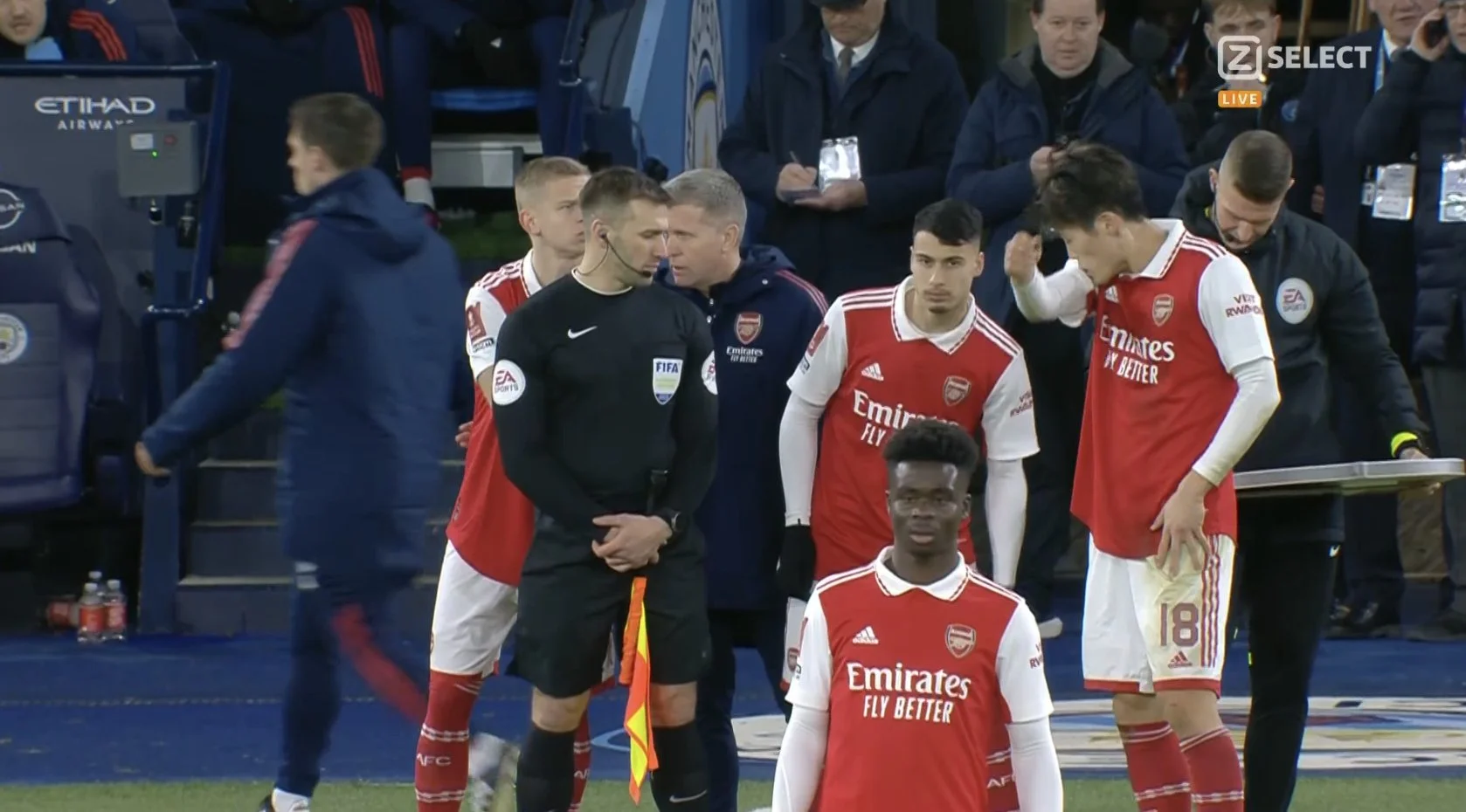 Холдинг уже давно ходил по краю. Судья выписал запасному центрбеку желтую, ведь тому лишь борцовским приемом удалось остановить рывок Холанда. Все свои 4 удара за первый тайм Арсенал выполнил из пределов штрафной. У Сити только Марезу позволили пройти в опасную зону да и того прикрыли плотненько. Удивительно, но запас Арсенала без Эдегора, Мартинелли, Зинченко, Уайта, Салиба и Рэмсдейла все равно выглядел получше, чем по сути основа Манчестер Сити. Стоунз потянул бедро в борьбе с Троссаром – только результативного действия не хватает бельгийцу в достойном полноценном дебюте за Арсенал. Ляпорт выходит на замену.