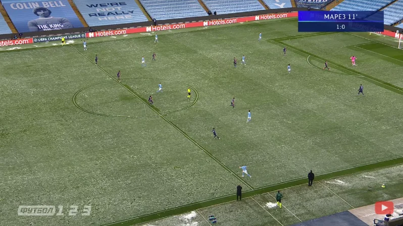 Поле "Этихад Стэдиум" поразило футболистов майским снегом, на котором футболисты с первых минут начали скользить. Интересней всего то, что первыми к газону привыкли гости: после нескольких минут разведки они начали обострять игру через левый фланг – на 5-й минуте с угла штрафной пробивали Неймар и Ди Мария (удары накрыли), на 6-й Анхель обыграл защитника и упал почти на линии штрафной, а на 7-й ПСЖ заработал пенальти за руку Зинченко! К счастью для "горожан", VAR вмешался в ситуацию. Мяч попал в плечо украинцу, поэтому "11-метровый" отменили.
