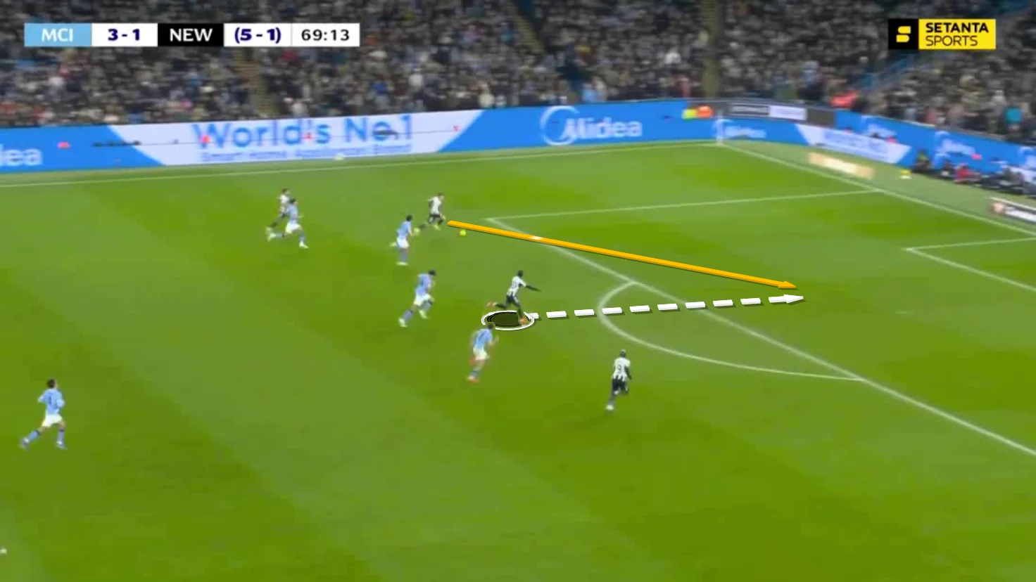 Да, хозяева уже сделали результат. Так, Гвардиола дополнительно ослабил центр обороны, сняв в раздевалке опытного Аке и выпустив молодого Оллина. Так, Пеп мог позволить себе работу по счету, контратакуя Ньюкасл – вот только качественных контратак до 80-х минут команда не проводила! К этому времени Сити выполнил только один удар по воротам при 4 касаниях в штрафной.